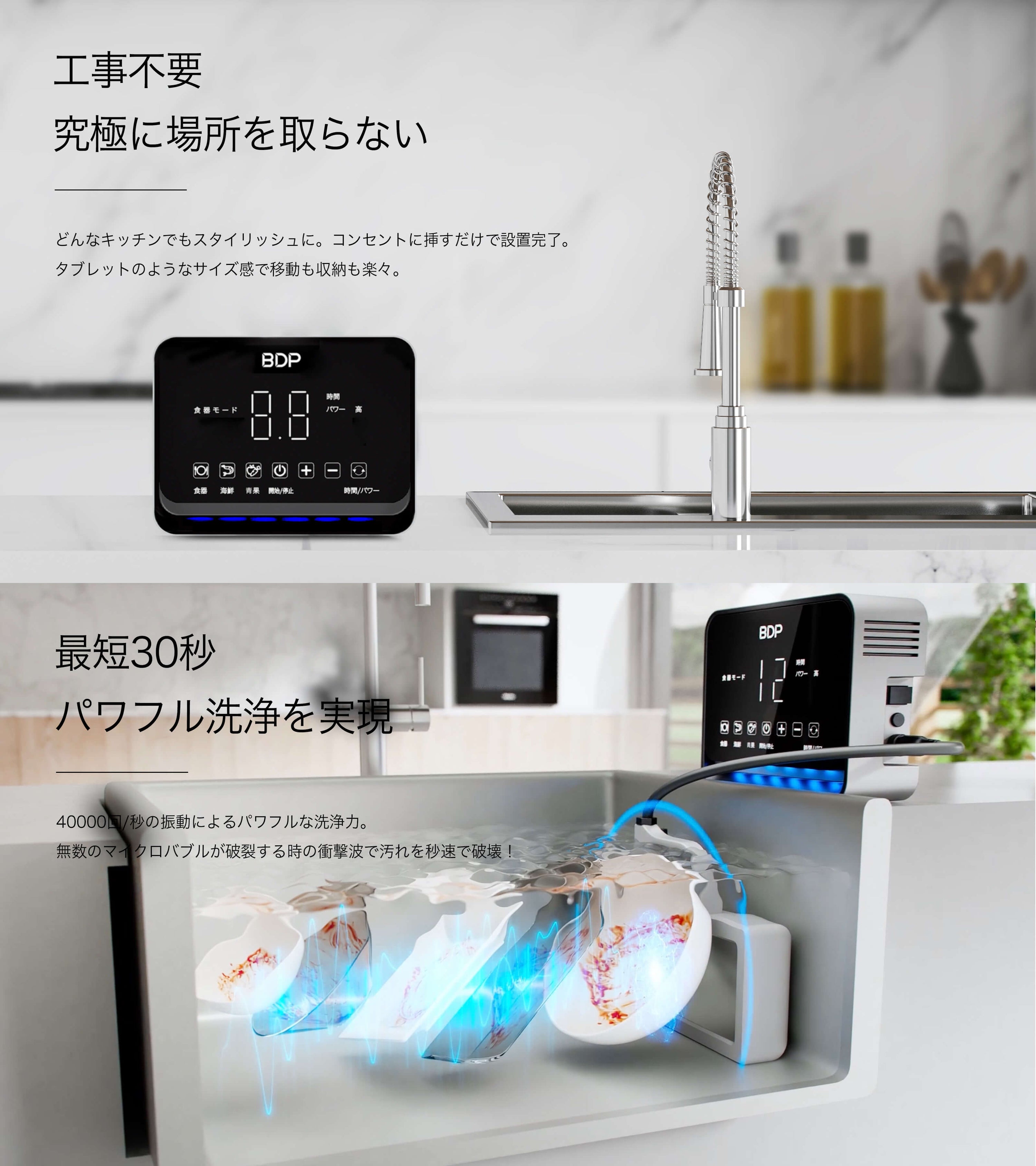 【9大特典付き】工事不要・究極に場所取らない携帯可能超音波食洗機 | THE WASHER PRO